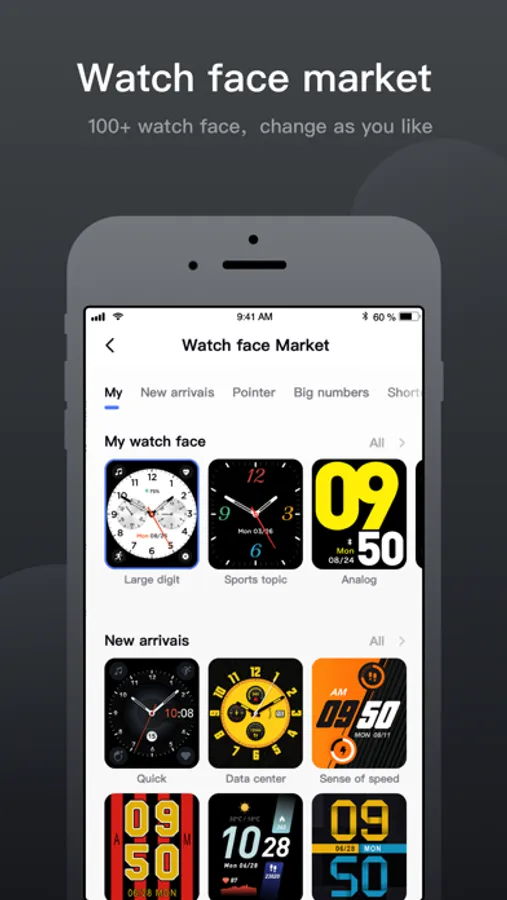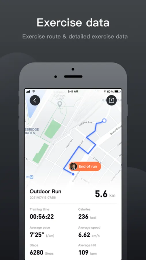 Support 24 exercise modes, recording your HR, calories, distance, trace, pace... and analyze your exercise performance.