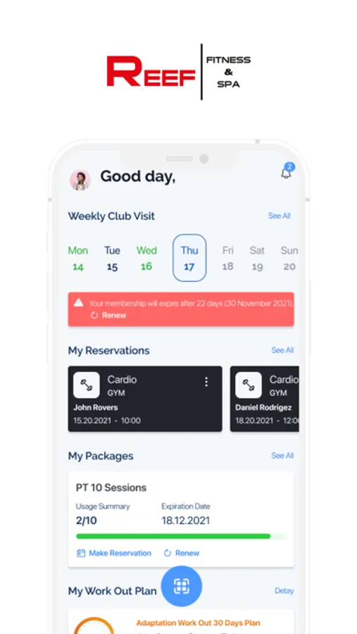 Reef Fitness üyeliğinizi yönetmek için kullanılan bir IOS uygulamasıdır. Müsteri Programları, Ölçümleri, Rezervasyon Alma, Hizmet Satın Alma, Stüdyo Ders İşlemlerini gerçekleştirebilen Senkron Yazılım tarafından üretilmiş bir IOS uygulamasıdır.