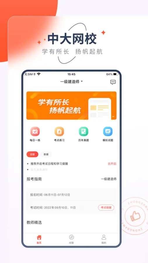 中大网校学员端-职业教育学习工具,用相对少的时间顺利高分通过的考试助手。