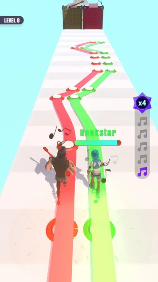 Hit the notes and gather your band together passing through gates. Just rock it!