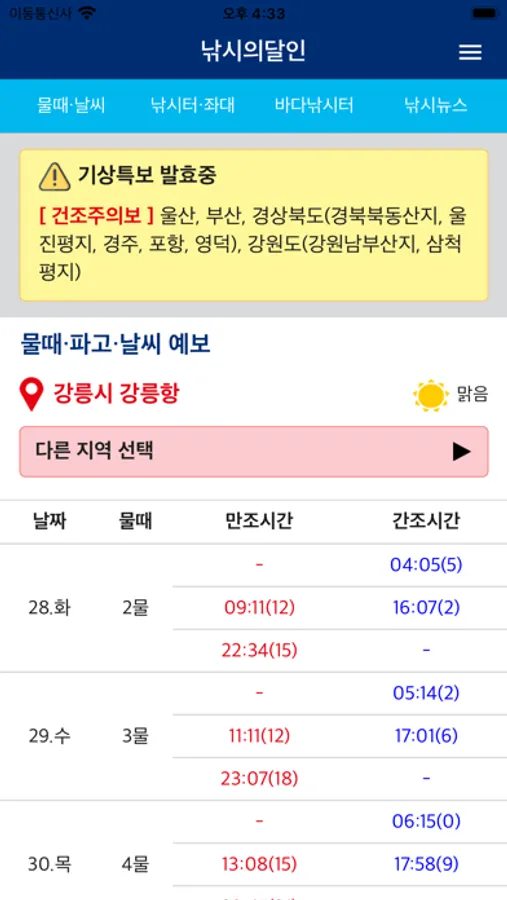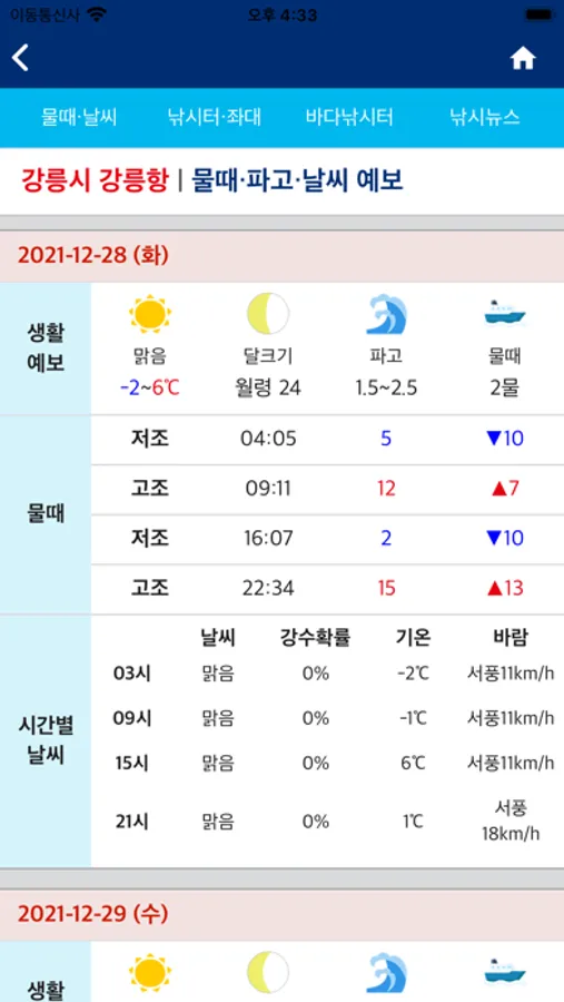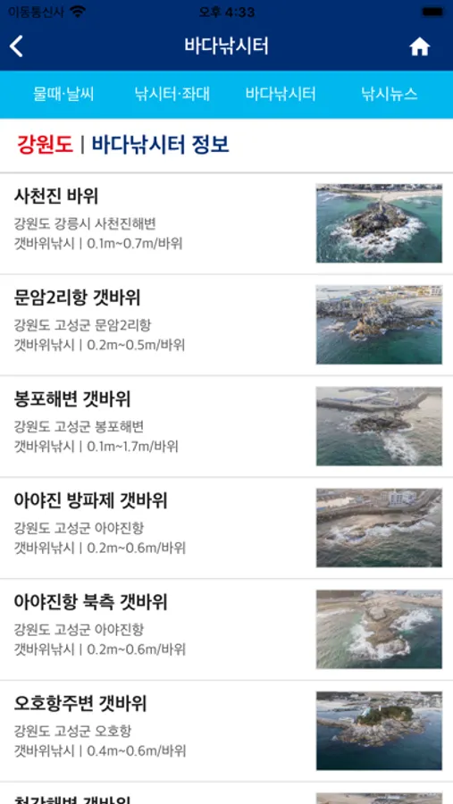 본 앱의 기상정보 및 물때 등은 실제 관측소의 정보를 이용해 최대한 자세한 정보를 제공하기 위해 최선을 다하고 있습니다. 하지만 실시간 기상 상황이나 현지 관측소의 사정으로 인해 실제와 다르거나 누락될 수 있으니 주의 바랍니다.