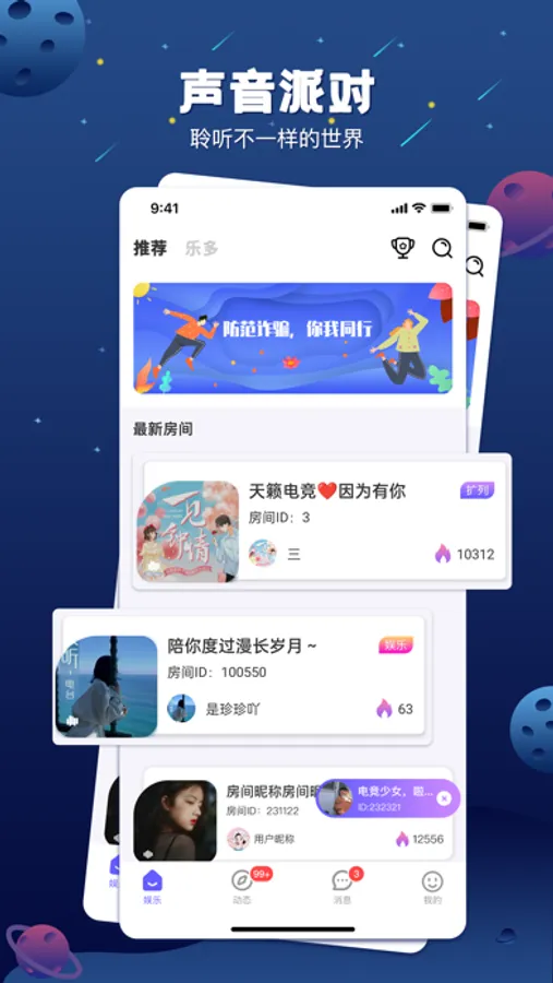 【声音派对】语音连麦,扩列交友,多人语音实时畅聊,通过声音结识更多有趣的灵魂,不同的语音聊天室,等你加入;不止聊天更是陪伴,当你需要时我就在;