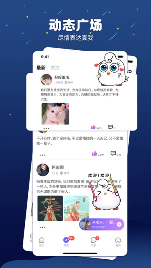 【动态广场】多种形式记录美好生活,在这里,可以尽情表达真我,遇见不一样的心动,邂逅最合拍的另一半。简单、心动、惊喜,相遇本该如此美好;