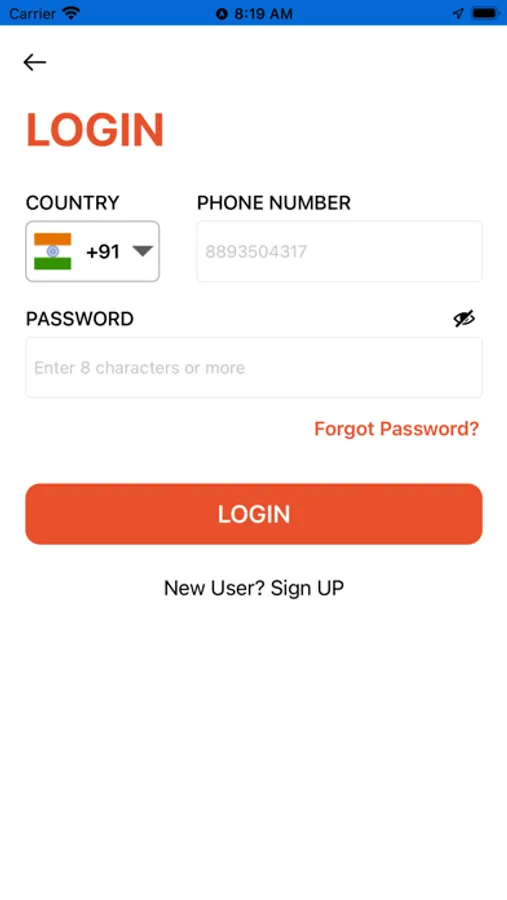 1. Open the app, sign up and simply choose a service,