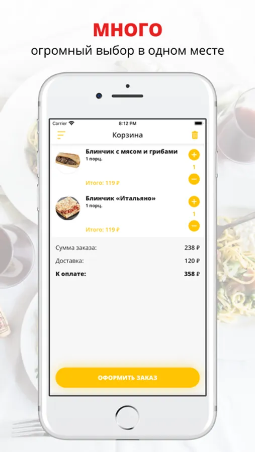 Скачивайте наше приложение, оформляйте заказ и наслаждайтесь любимой едой, где бы Вы ни были! Приятного аппетита!