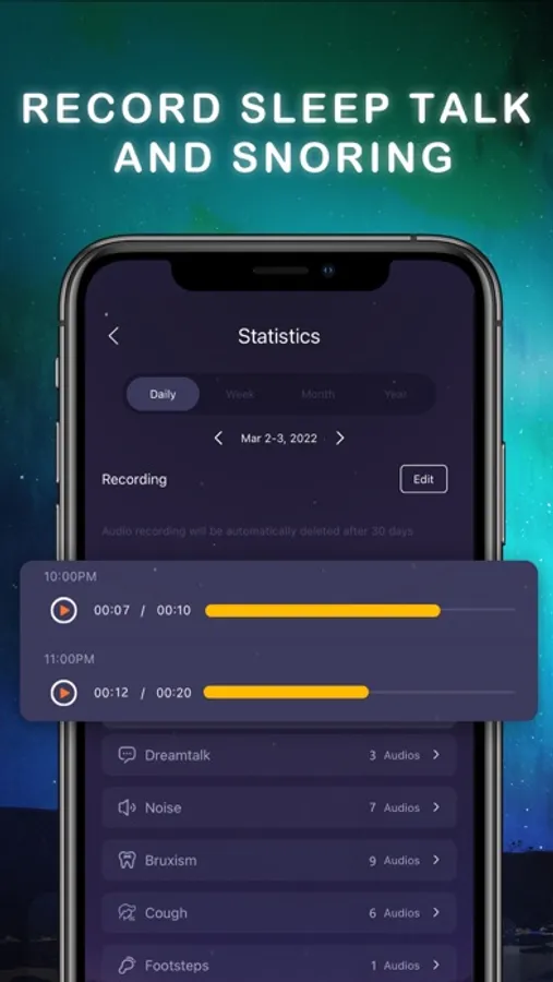 - It can record snoring, teeth grinding, sleep talking, etc. during sleep to help you understand your sleep deeply
