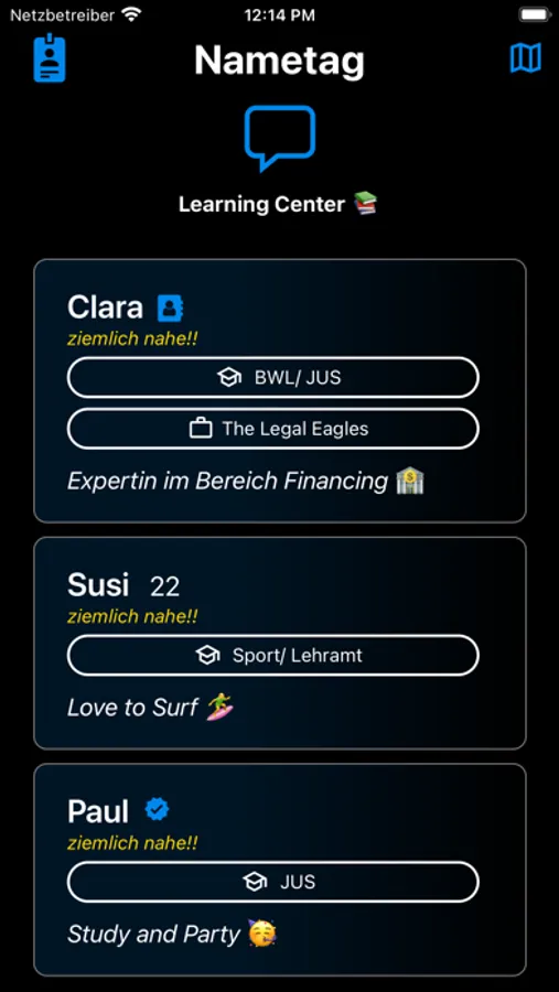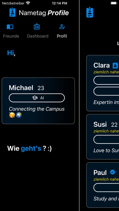 Nametag is a social Network, with which you can chat in the lecture hall!