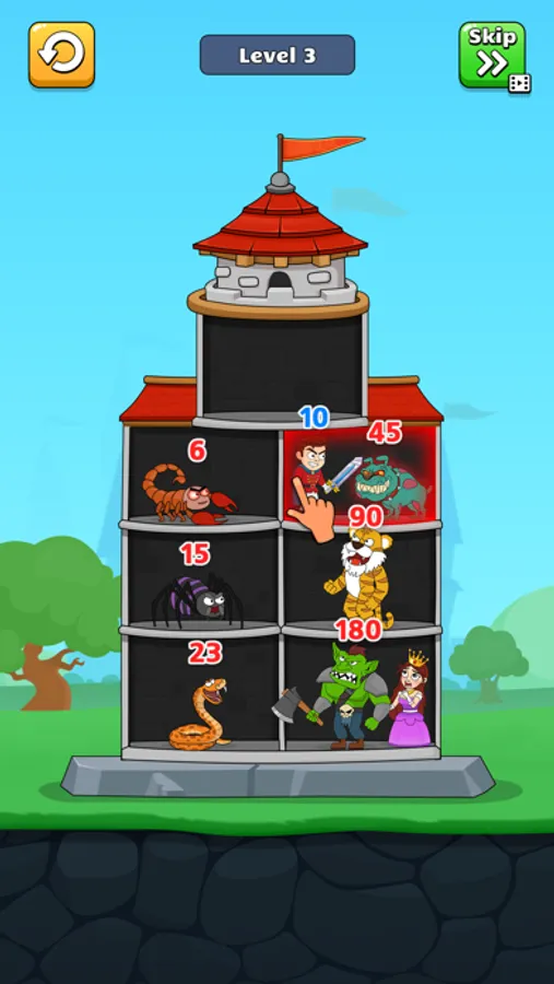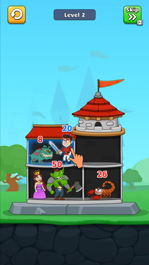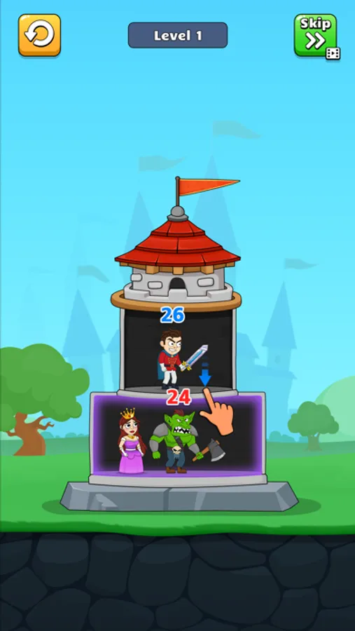 - Drag & Move your hero wisely to power up, collect the loot, destroy enemies and save your princess.