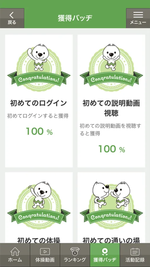 その他、集めて楽しいバッヂ獲得や、活動記録など便利な機能もついてます!
