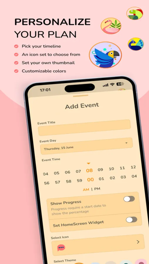 - Icons & Colors: Thousands of diverse icons and colors can be customized to match the meaning of the event.
