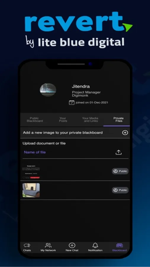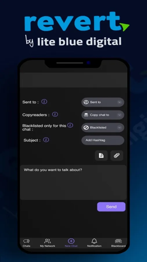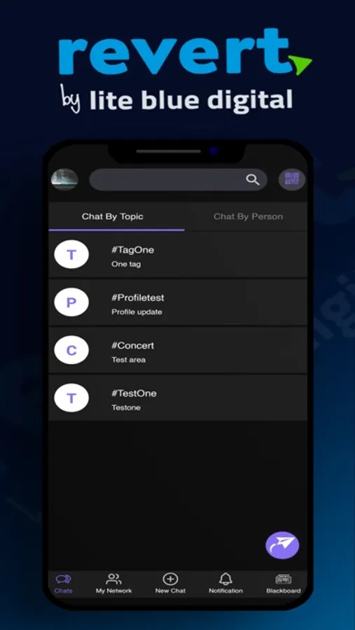 The platform offers an instant messaging service where users can create dedicated chat environments (chat-rooms) identified by topic using one or multiple hashtags. Each chat-room is initiated by the post originator when setting up the message’s topic and relevant distribution list. Such initial message (always identified by a topic/hashtag) is dispatched on a one-to-one private basis to all the selected recipients. All the interactions between the originator of the message and the recipients are at all times private one-to-one although gathered in the same chat-room feed for that topic. When the originator posts the initial message identified by a certain topic/hashtag, the App will open a chat-room accordingly which will gather all the one-to-one exchanges between the originator and the recipients about that topic, in the same feed, in chronological order.