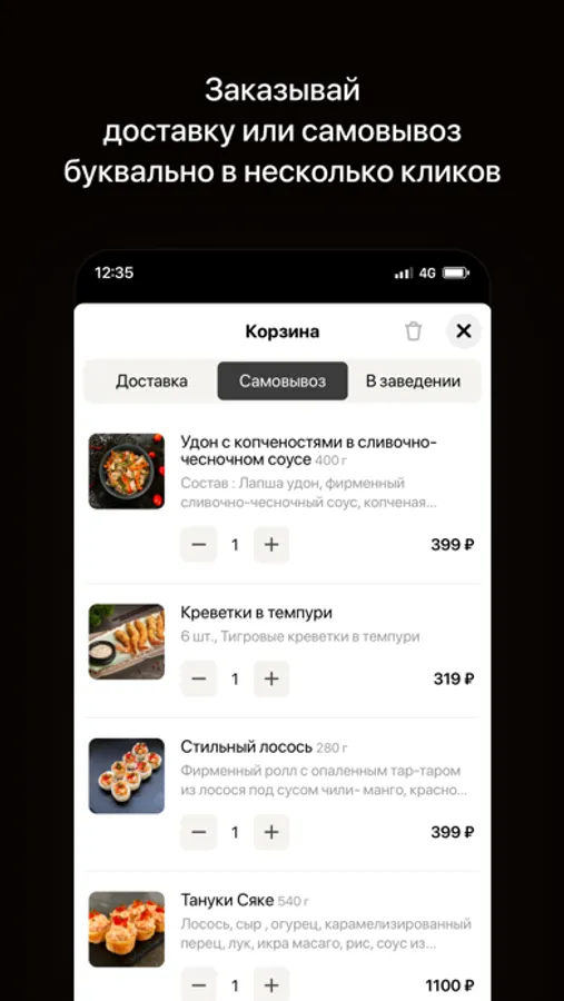 — Быстрый заказ с мгновенным подтверждением через приложение.