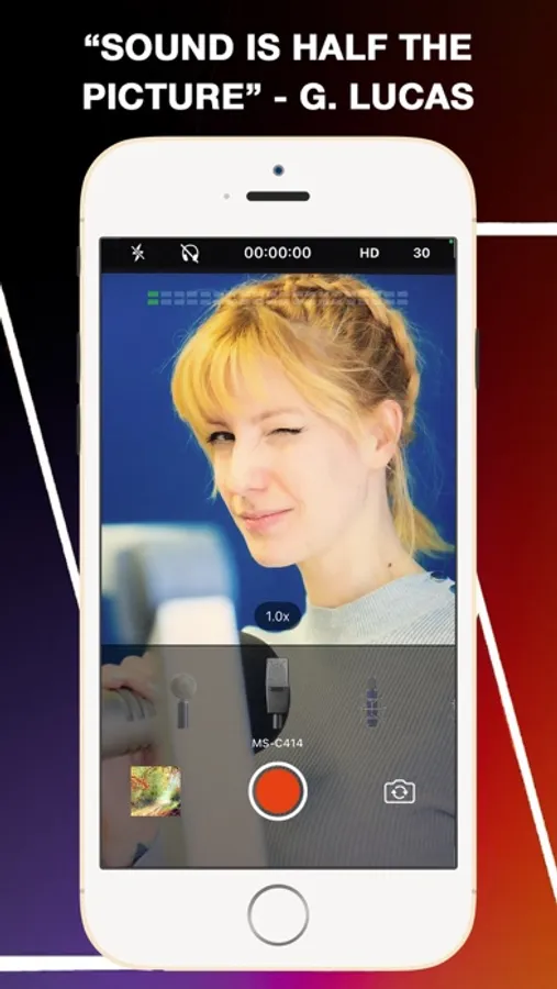 Finally, a video camera that gets you great sound! With our advanced MicSwap audio technology you can now easily shoot a video with great sounding audio. Swap microphones for different sounds. Change the microphone sound after you shoot the video. See your audio levels and let our app do the rest!