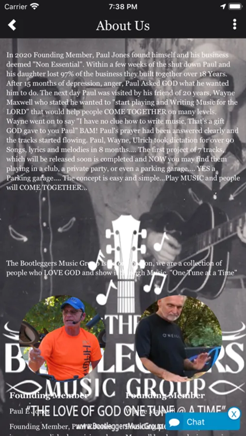 The Bootleggers Music Group app allows you to enjoy our music with live streaming as well as listen to and join live broadcasts. Learn more about our mission and our music using the app