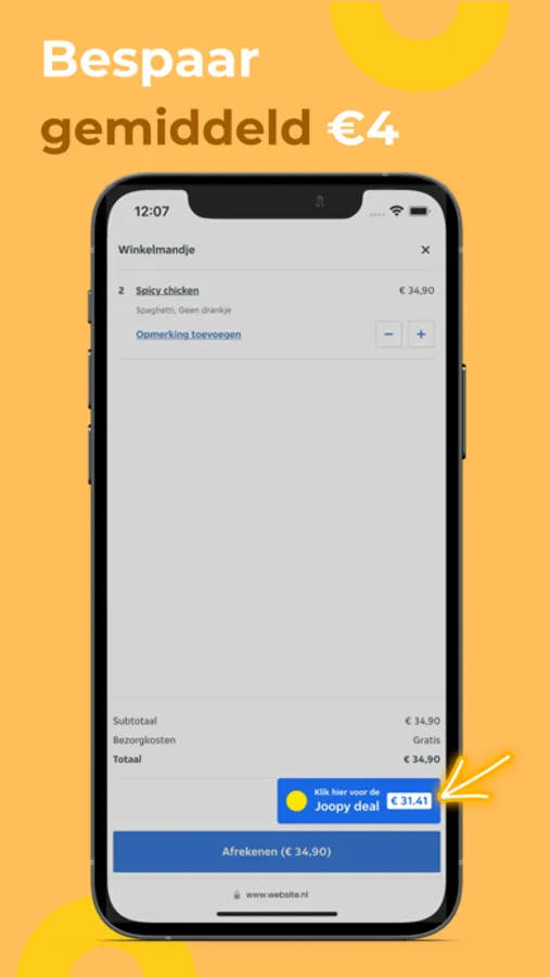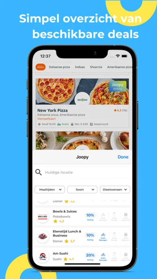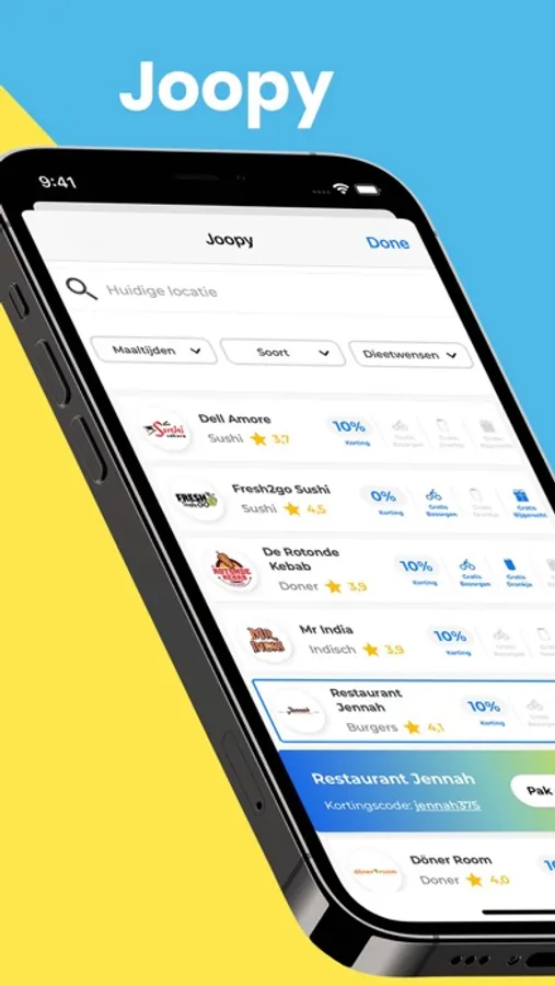 Joopy is geïntegreerd met alle maaltijd bezorgdiensten zodat je snel en goedkoop een verse maaltijd kan laten thuisbezorgen. Je ziet direct welke restaurants korting aanbieden of acties hebben en klikt gelijk door naar de bestelpagina van het restaurant.
