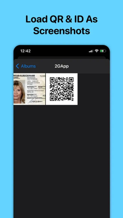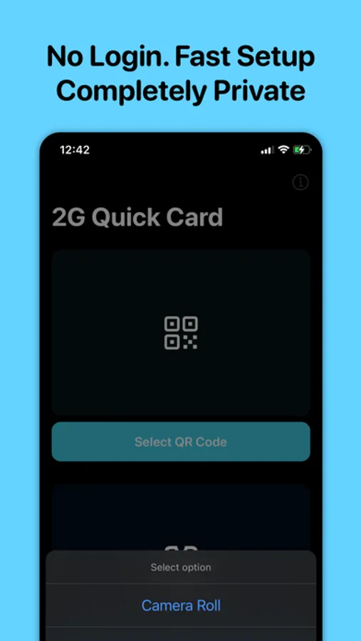 Load your QR Code and ID Card as screenshots and the next time you need to display them, you have them ready to go via 2G Quick Card.