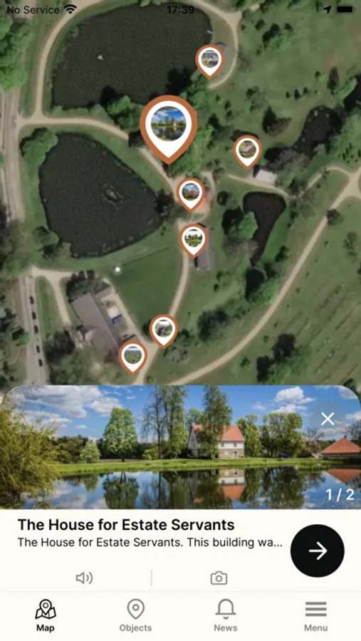 Navigate the area and keep track of your location on the map. Find the objects closest to you and visit them.