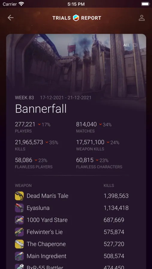 Destiny Trials Report is the ultimate companion for players of Trials of Osiris, a game mode in Bungie's video game Destiny 2.
