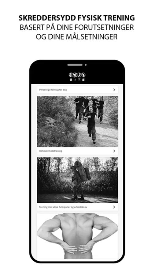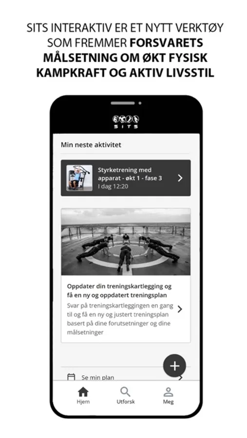 SITS interaktiv er en treningsapplikasjon for militært ansatte, vernepliktige og sivilt ansatte i Forsvaret. Dette er et nytt verktøy som fremmer Forsvarets målsetning om økt fysisk kampkraft og aktiv livsstil. SITS interaktiv er din interaktive treningsveileder som vil hjelpe deg å nå dine treningsmål.