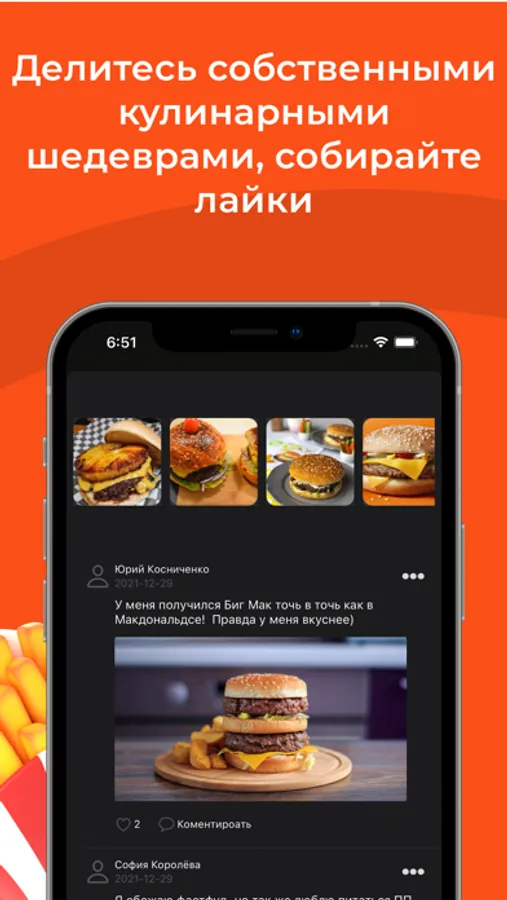 Делитесь собственными кулинарными шедеврами, собирайте лайки, совершенствуйте навыки готовки и наслаждайтесть приложением.