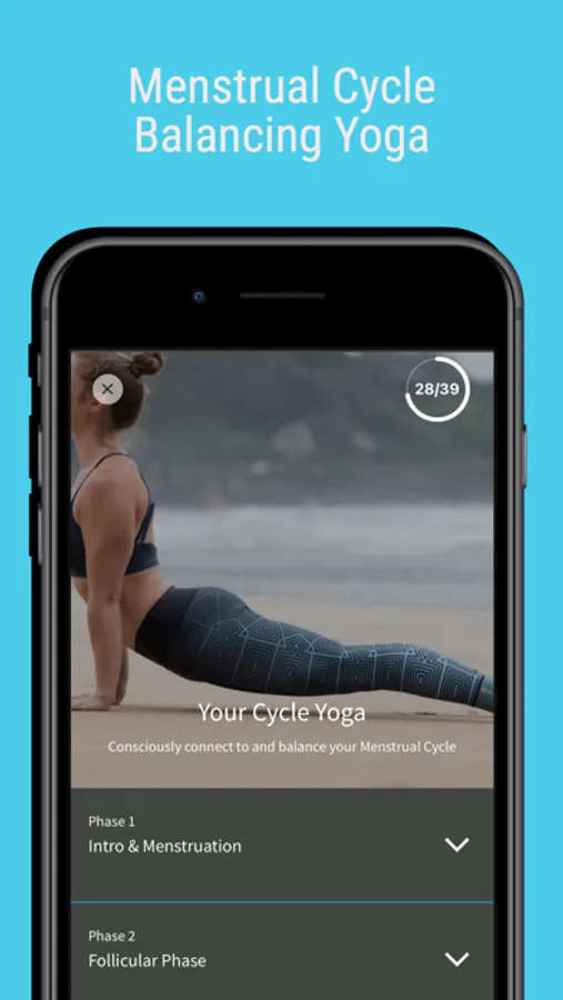 -'Your Cycle Yoga' Through specific yoga and meditation practices for each phase of your cycle you will learn how to move your body in sync with what it needs each phase. In particular helping to clear stagnation (a major cause of symptoms) and improve circulation (allowing your body to come back into balance). The practices are designed to be repeated cycle after cycle with a variety of class lengths and styles to choose from, so you can pick just what you need each time you come to the mat.