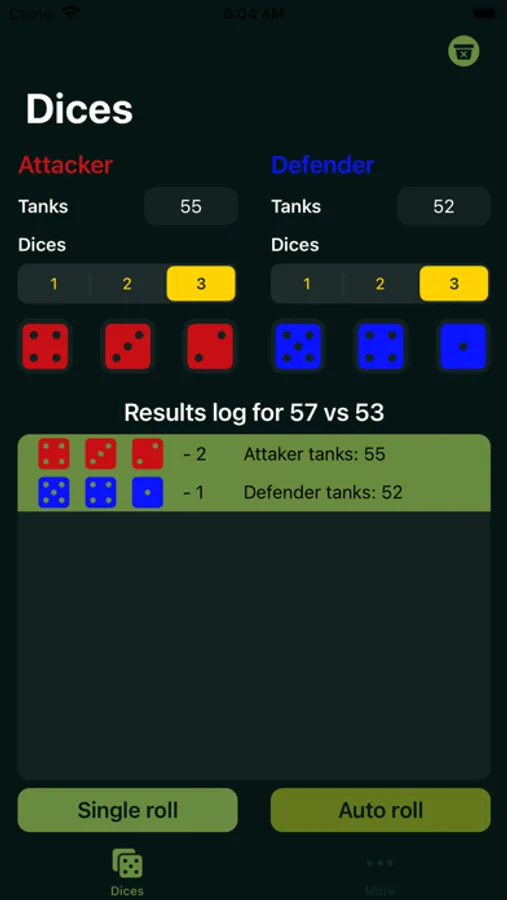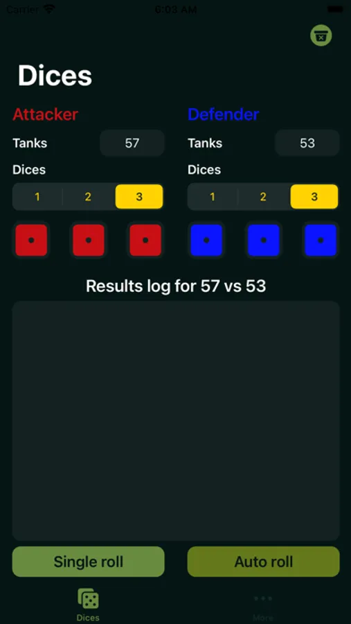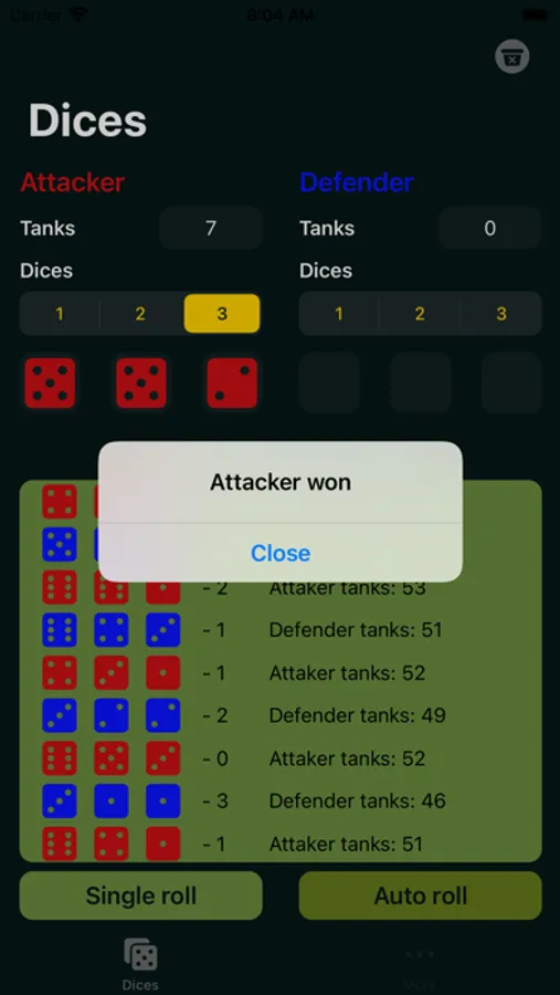 You only need to insert the amount of the attacker's and defender's tanks, determine the amount of dices you want to use. Then you roll the dices.