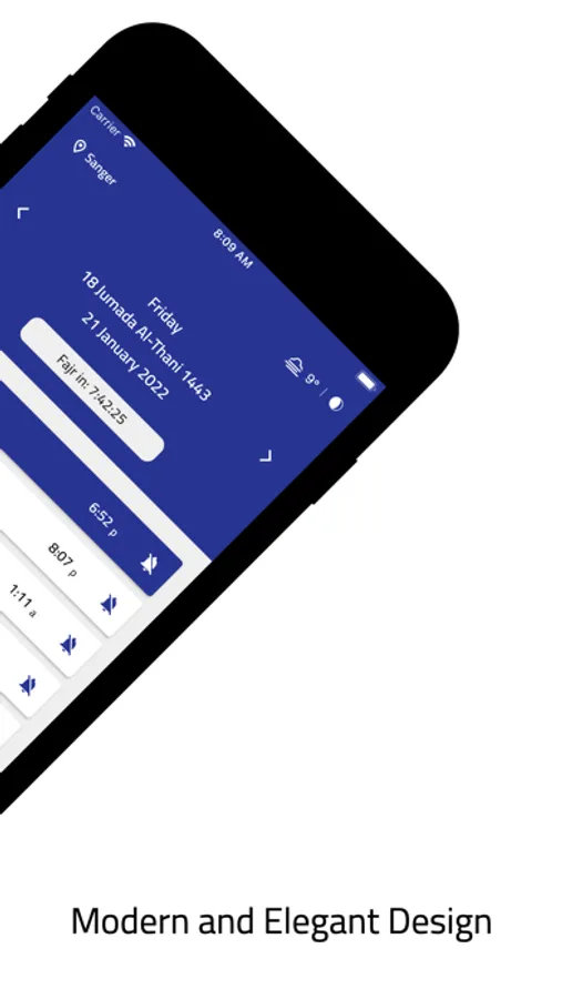 - Home page to display daily prayer times with Hijri and Gregorian date