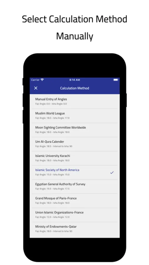 - Automatic selection of the method of calculating prayer times according to geographical location and country, with the possibility of selecting the same manually