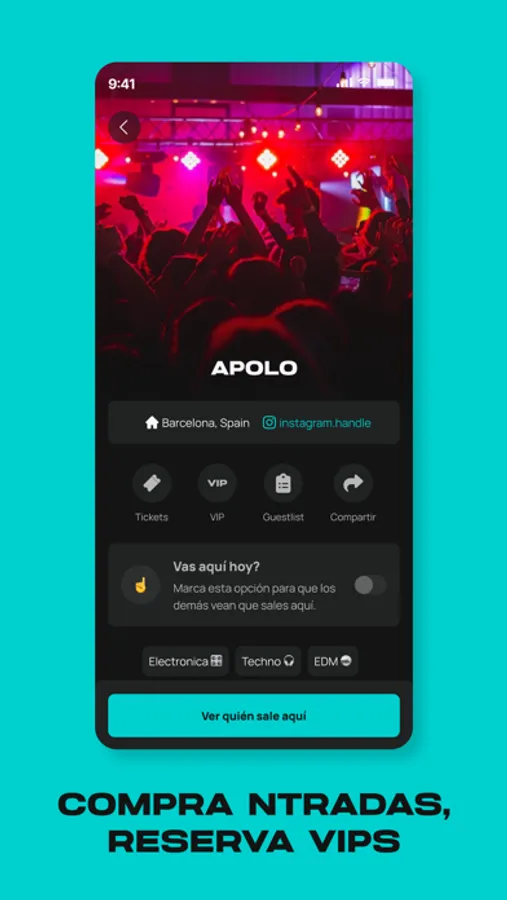 We've created an app exclusively for meeting people at your favorite venues in your city. And to be aware of the most popular events and parties. And to meet your friends and know where your friends are going. And to reserve VIP tables. And to get on a list. And to access exclusive promotions. And... yes, you guessed it, for many more things. Did you think it wasn't enough? Well, even more interesting features and functionalities will be coming soon!