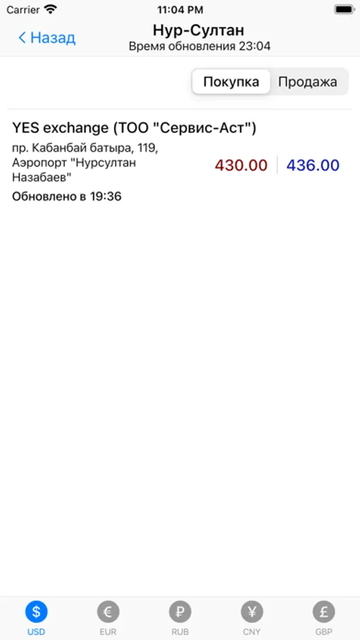 - Выбор валюты (USD, EUR, RUB, CNY, GBP)