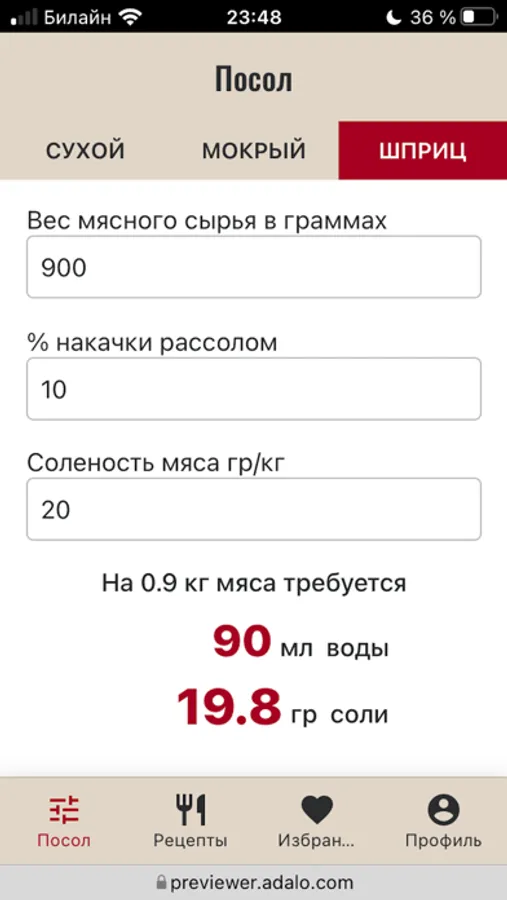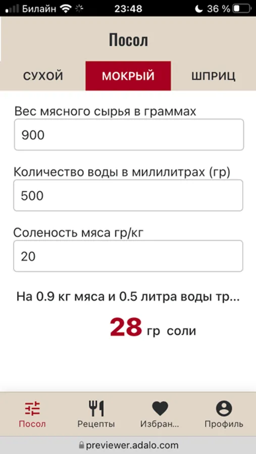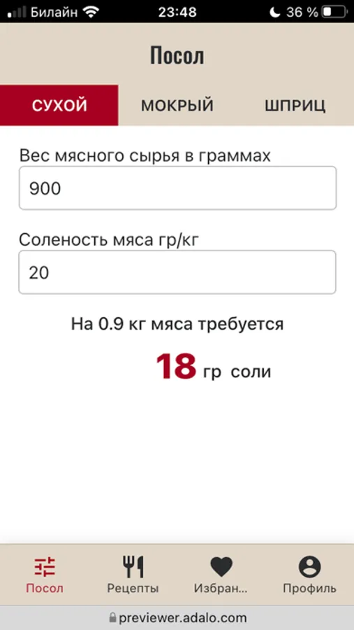 Быстрый расчет соли для различных способов посола чего угодно, быстрый перерасчет рецептов колбасы под свои потребности - это всё Колбасный калькулятор!