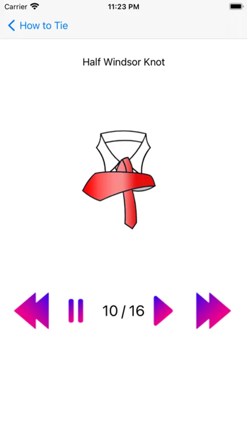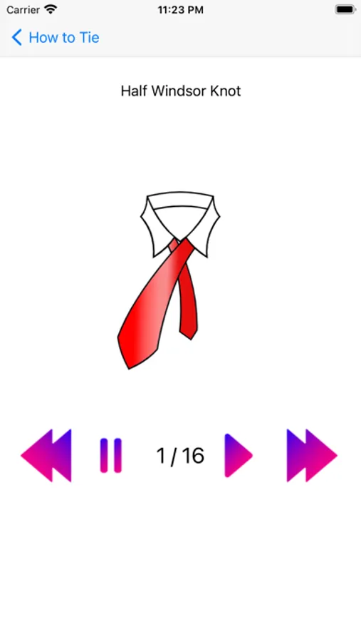 Our application is a step by step instruction. All the tie knots are shown on the simple pictures. It’s easy to follow the instruction: you just look at the picture and repeat the action on your tie. If something goes wrong, you always can go back to the previous picture and do it again.