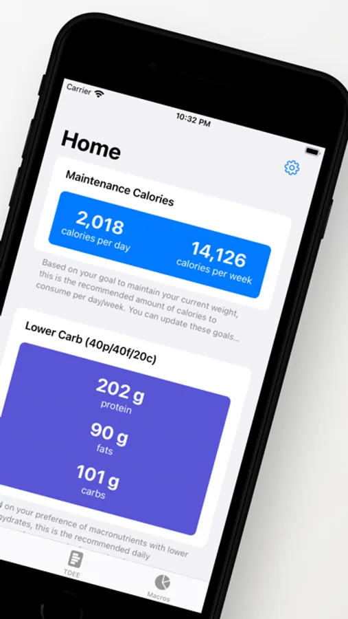 FoodSum offers a minimal and clean interface that allows your find your Total Daily Energy Expenditure (TDEE) as well as your Macronutrients.