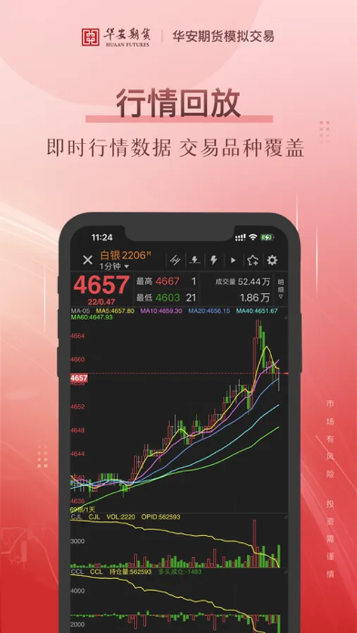 华安期货最新上线的一款综合性期货学习软件,集实盘账户复盘、期货模拟交易训练、独创性行情动态回放等多项实用功能于一体, 结合丰富的学习内容资源,完美契合资深交易员及投资新人的各类学习诉求。