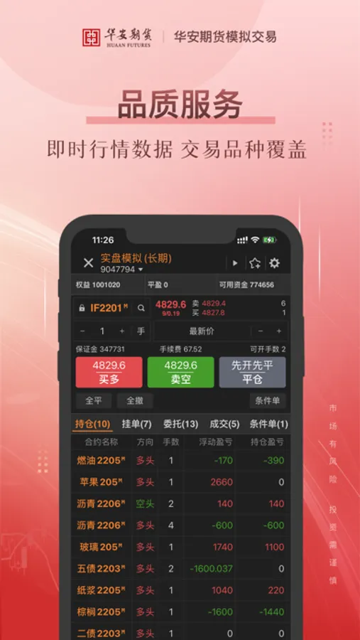 模拟交易训练:直连交易所行情,期货期权品种齐全,给你最真实的交易环境,随时练习盘感、精炼交易策略