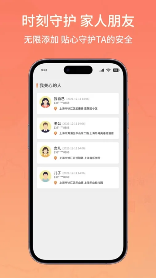 3. 安心守护:支持家人、孩子、伴侣、好友等安全守护;