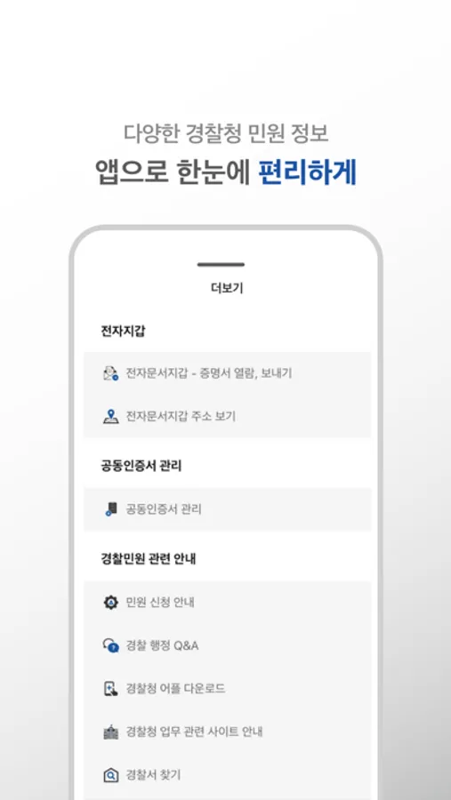그 외에도 경찰 행정과 민원 관련 정보도 함께 확인하실 수 있습니다.