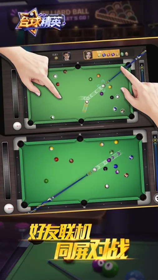 联网不能面对面,出门不方便,在同一台手机上就能和家人马上开启愉快的台球对战!