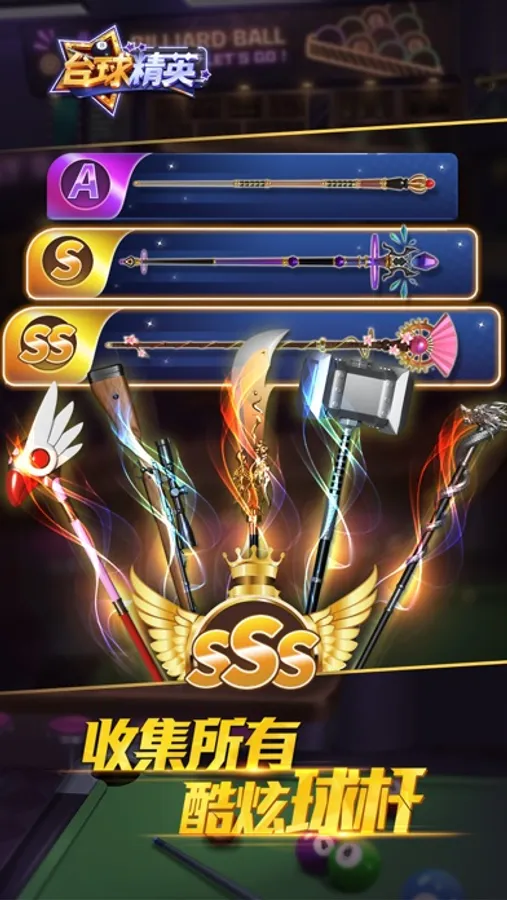 提供多种酷炫的球杆,击球特效和球杆技能,方便搭配出最适合自己最个性的组合,开启台球传奇生涯