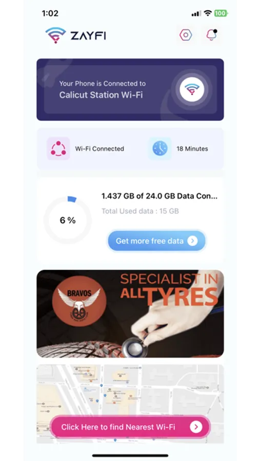 ZayFi app can connect you to the internet through ZayFi WiFi hotspots in restaurants, clinics, hospitals, malls, stadiums etc. in different countries such as UAE, Australia, India so on. And the network is still growing into more countries day by day. In most of the countries mobile data is costly and limited in speed. ZayFi brings a solution for this as the widely spread WiFi hotspot network connects you to internet at free of cost. Also many more offers and discounts waiting for you inside.