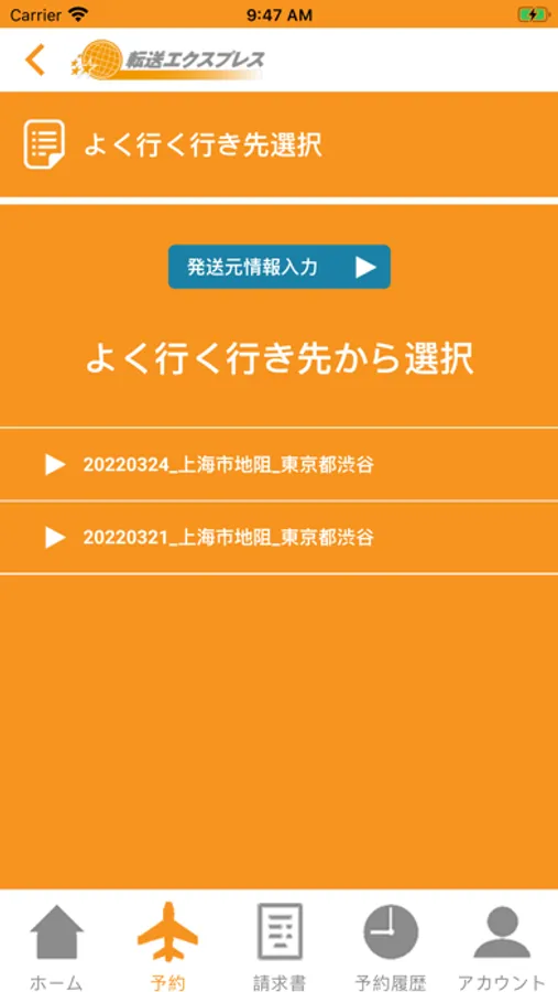 「Tenso-Express ハンドキャリー」アプリは株式会社転送エクスプスレスのハンドキャリーを利用するお客様のための配送依頼を作成するためのアプリです。スマートフォンから手早く依頼できます。