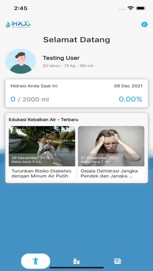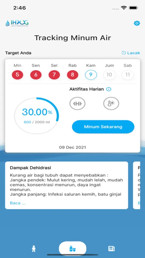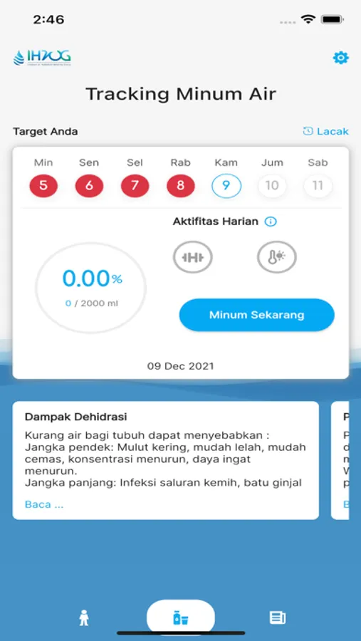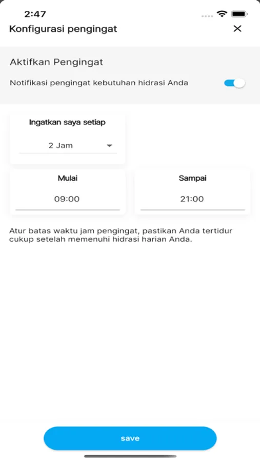 Aplikasi pengingat untuk mengkonsumsi air yang bertujuan untuk memberi peringatan kepada para penggunanya mencukupi kebutuhan cairan yang di perlukan oleh tubuh setiap harinya sesuai dengan takaran yang pas, dan baik untuk kesehatan.