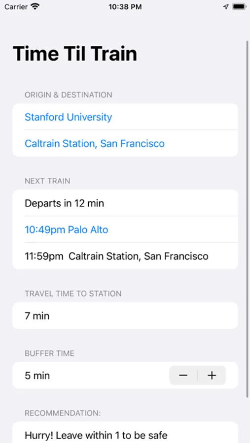 Streamline your commute by knowing exactly when you need to leave in order to catch your train.