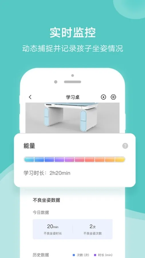 黑白调儿童桌椅APP,是黑白调集团旗下儿童桌椅AI智能款的交互平台,是您手机里关于这款学习桌的智能学习助手,通过黑白调儿童桌椅APP,家长可以在后台监测到孩子的坐姿健康情况、学习作业时长等,结合系统呈现和分析的数据,家长可以很直观的提醒孩子并给到他科学的提醒,防止孩子习惯不当影响到身体健康。并且这里还能给学习桌设定桌椅部分调节功能的参数、能量条激励的数据等,共同打造“懂你懂孩子的家庭学习助手”,助您的孩子开启科学激励、轻松健康、智能便捷的学习时光。