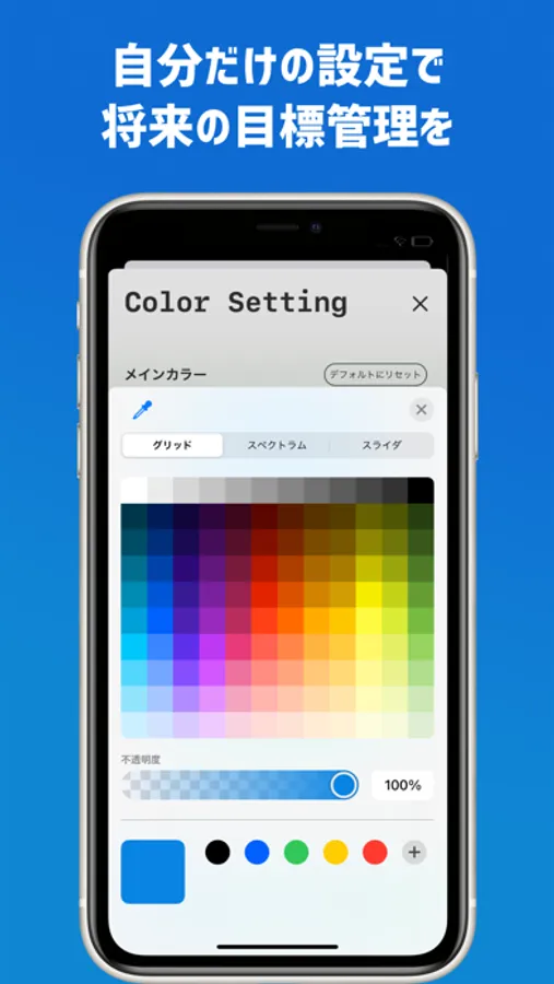 アプリ内で使用するメイン・サブカラーをユーザー毎にカスタマイズすることができます。