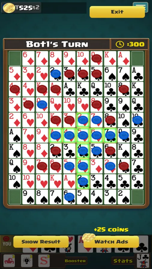 The player chooses a card from their hand, and places a chip on one of the corresponding spaces of the game board (Example: they choose Ace of Diamonds from their hand and place a chip on the Ace of Diamonds on the board). Jacks have special powers. Two-Eyed Jacks can represent any card and may be used to place a chip on any open space on the board. One-Eyed Jacks can remove an opponent's token from a space. Players may use the Two-Eyed Jacks to complete a row or block an opponent, and One-Eyed Jacks can remove an opponent's advantage. One-Eyed Jacks cannot be used to remove a marker chip that is already part of a completed sequence; once a sequence is achieved by a player or team, it stands.
