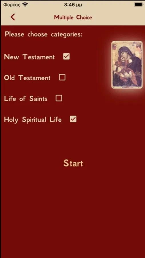 You can choose a way of playing by touching one of the Holy Icons.