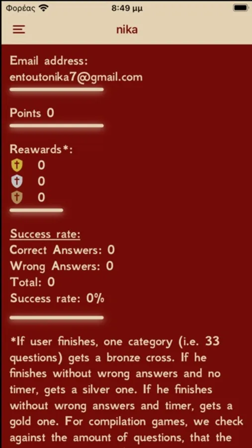 Further, there is a personal screen where you can see your details, your points, your rewards, the total number of answers you have given, and your success rate.