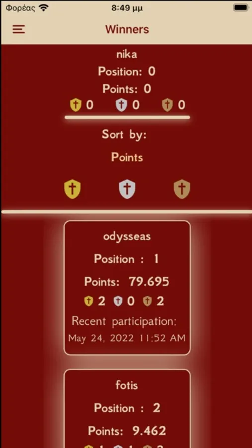 On the screen with the winners, you can see the ranking of the first 100 players according to the points or rewards.