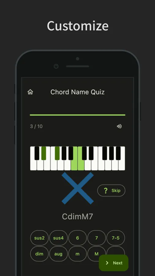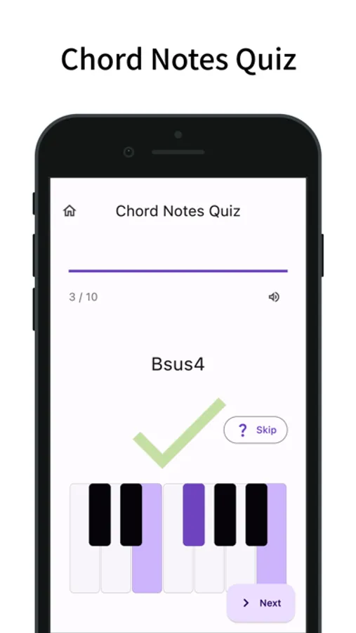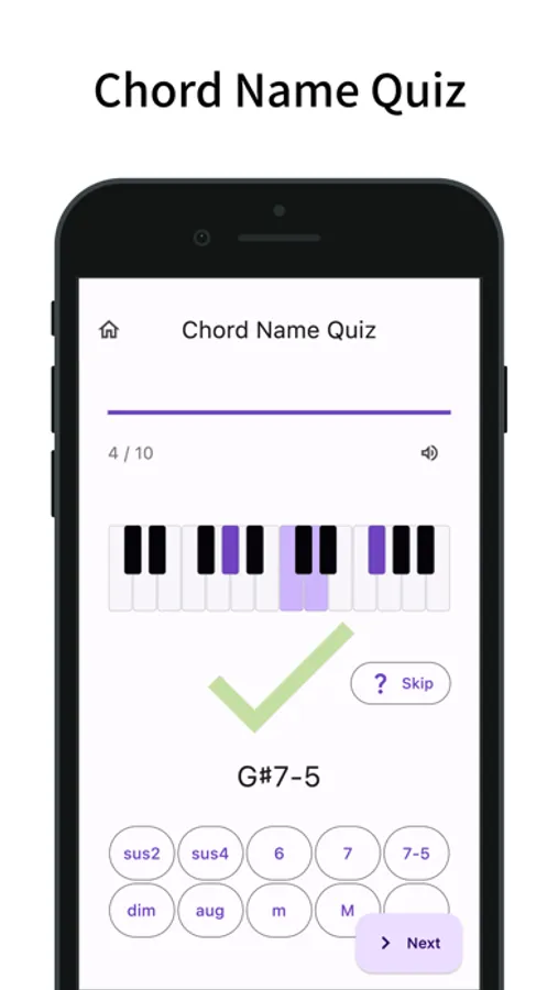 - Chord name quiz (select minor, sevens, etc. with buttons)
